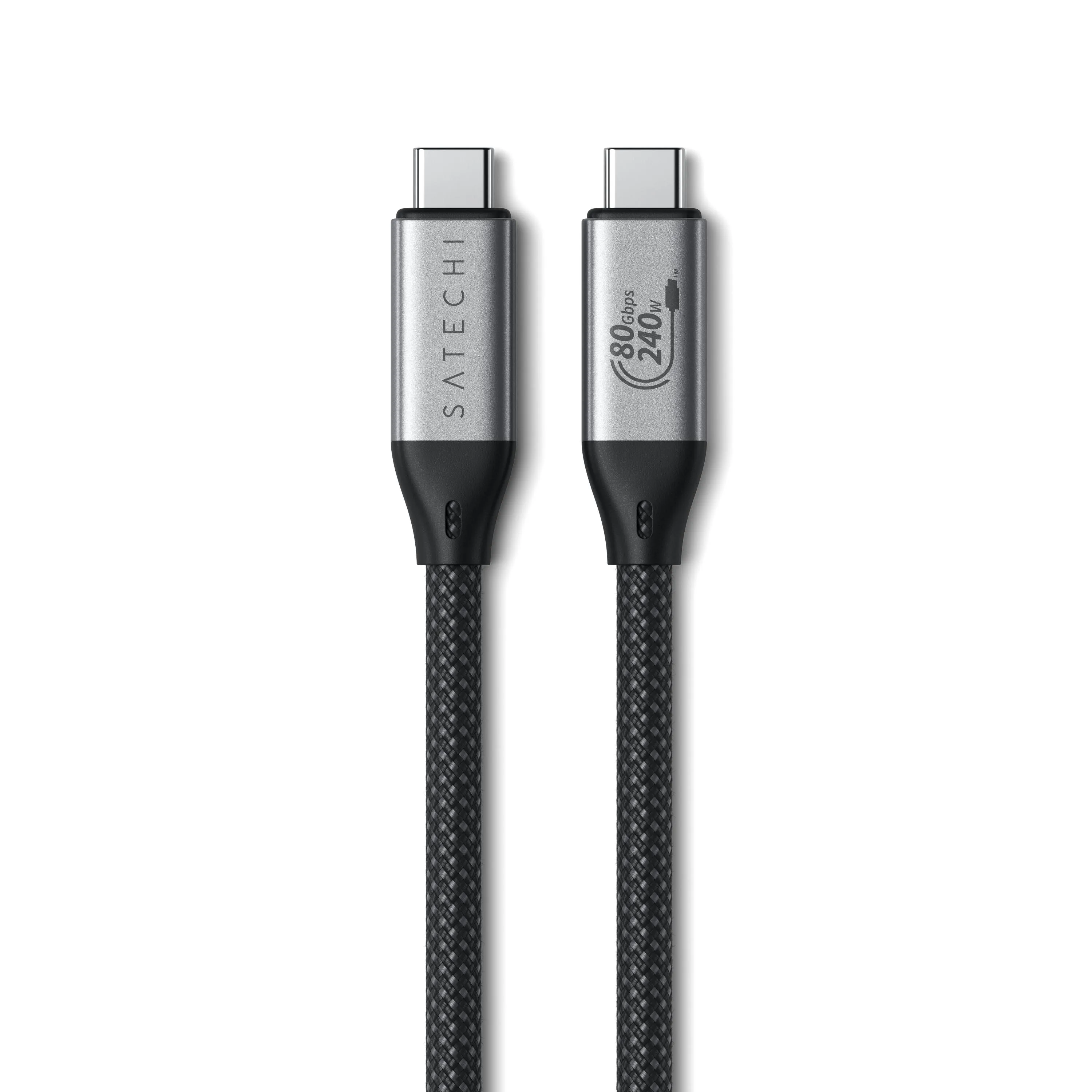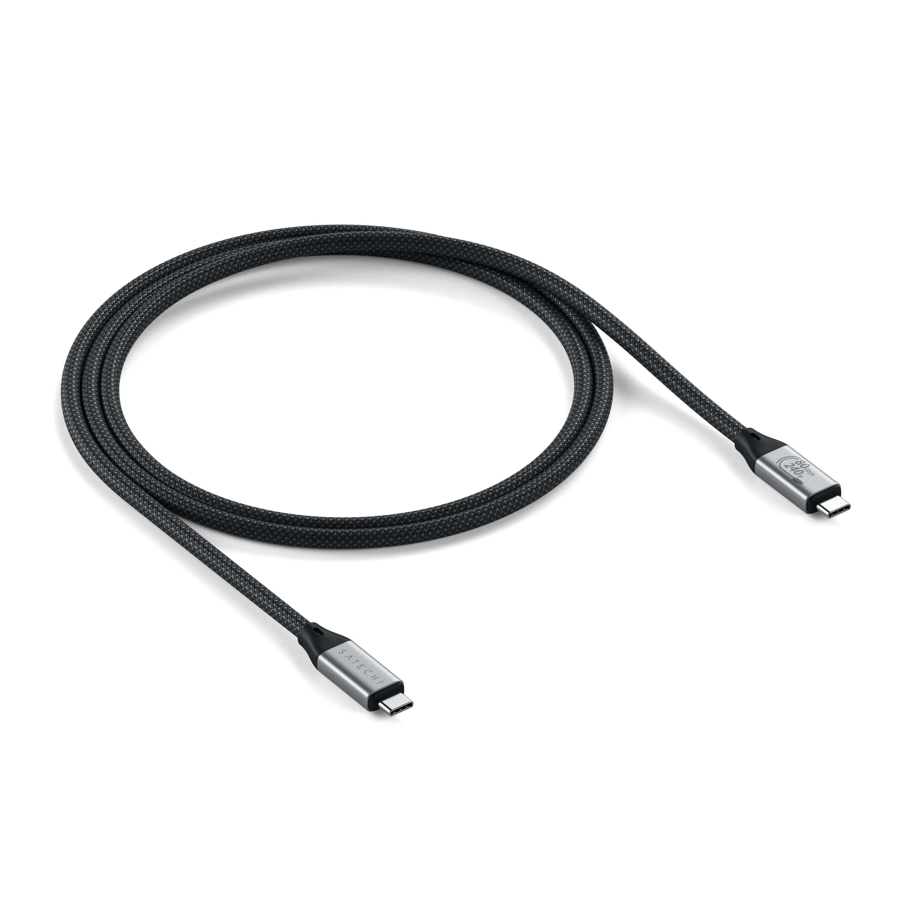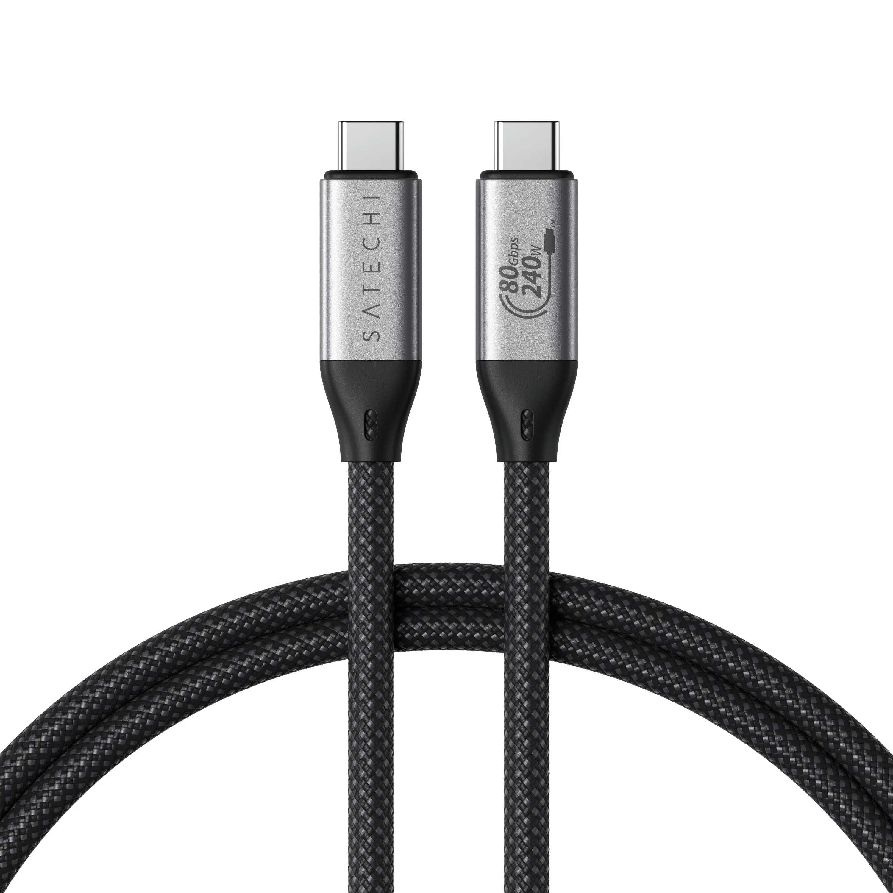 "USB4 cable with up to 80 Gbps bi-directional data transfer, 240 W power supply and support for 8K/120 Hz video. Braided construction and backward compatible with Thunderbolt 4/3 and USB-C."